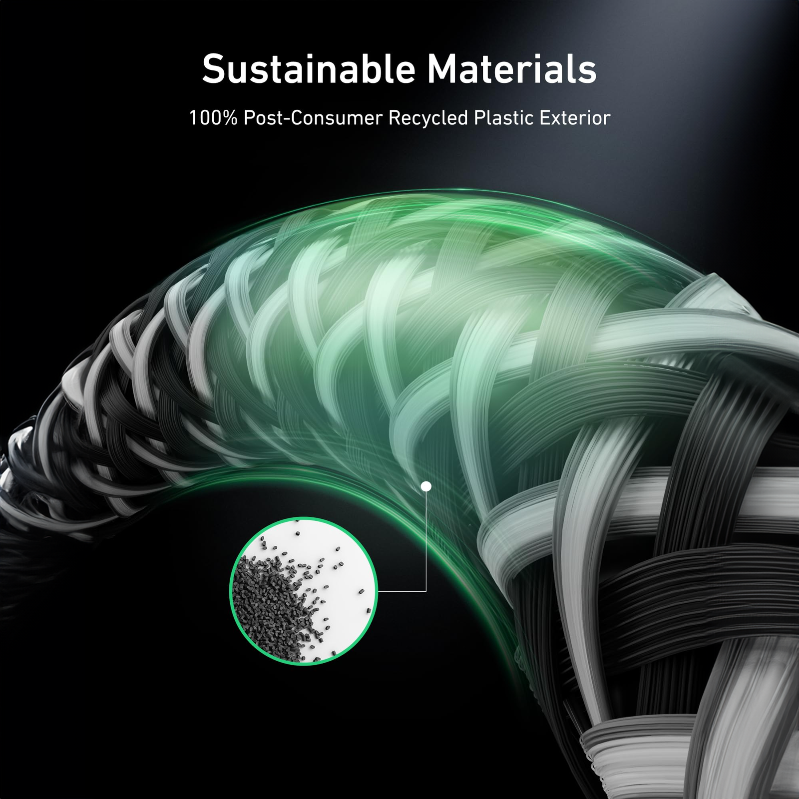 Ultra-Powerful 240W Charging: Lead a more efficient life with the capability to boost a 16-inch MacBook Pro (M3 Pro) to 50% in just 26 minutes, thanks to the 240W power. (Note: This cable does not support screen mirroring.) 100-Year Bend Durability: Engineered to withstand over 300,000 bends, this cable offers peace of mind for decades to come. Extreme Temperature Resilience: Keep your devices powered in any climate, performing flawlessly even after 72 hours in extreme temperatures from -40°F to 176°F. (Note: Please check that your devices can operate in extreme environments before use.) Sustainably Made Cable: Support a greener future with each use, featuring an outer layer crafted from 100% post-consumer recycled materials. What You Get: Fusion X Prime USB-C to USB-C Cable (240W, Upcycled-Braided), cord organizer, welcome guide, lifetime warranty, and our friendly customer service.