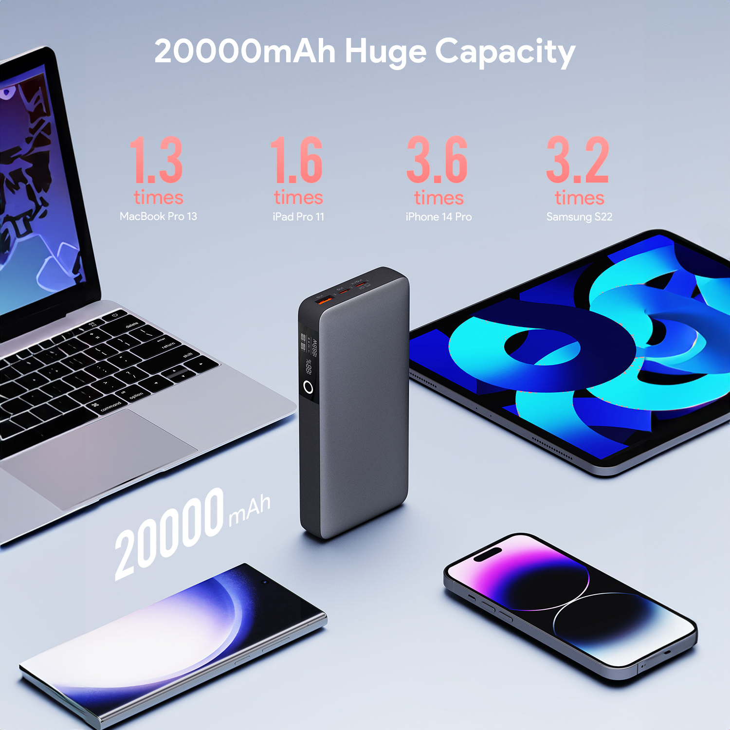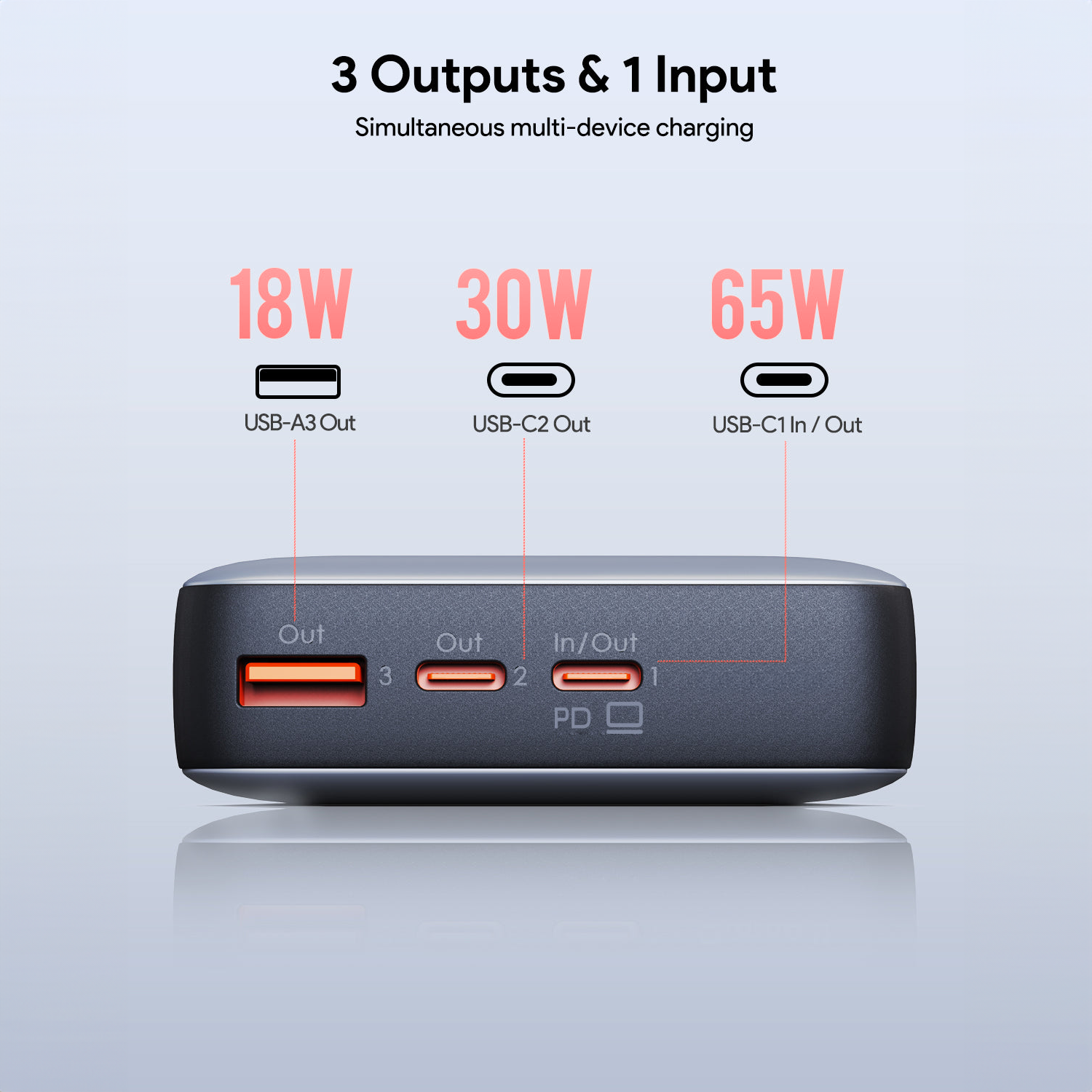 Powerful 65W PD fast charging Support PD & Samsung fast charging Intuitive digital display Small current charging mode Slim & Portable